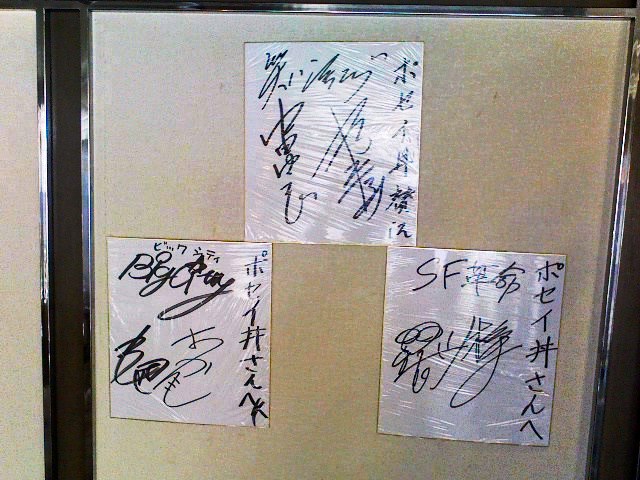 レストランの壁に札幌吉本の芸人さんのサインが。