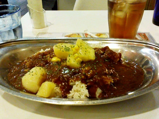 ご家庭のカレーと違って、じゃがいもの目立ちっぷりといったら…。(^^;)